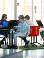Hópar frá leikja- og sumarnámskeiðum á höfuðborgarsvæðinu öllu hafa verið duglegir að nýta sér Bókasafn Kópavogs í rigningunni undanfarnar vikur. Í maí og júní hafa yfir 1.500 börn komið í heimsókn á aðalsafn og Lindasafn. „Það hafa verið heimsóknir nánast hvern dag eftir að skólunum lauk og virkilega gaman að fá börnin til okkar. Mörg hver hafa komið áður, en við nýtum samt þessar heimsóknir og kennum börnunum í leiðinni hvernig á að umgangast bækur og finna þær á safninu,“ segir Gréta Björg Ólafsdóttir, deildarstjóri barnastarfs á Bókasafni Kópavogs. Börnin eru hæstánægð með heimsóknirnar á safnið, en öll vilja þau einnig prófa ærslabelginn á útivistarsvæði Menningarhúsanna og hefur verið þéttsetið þar frá því hann var settur upp.
