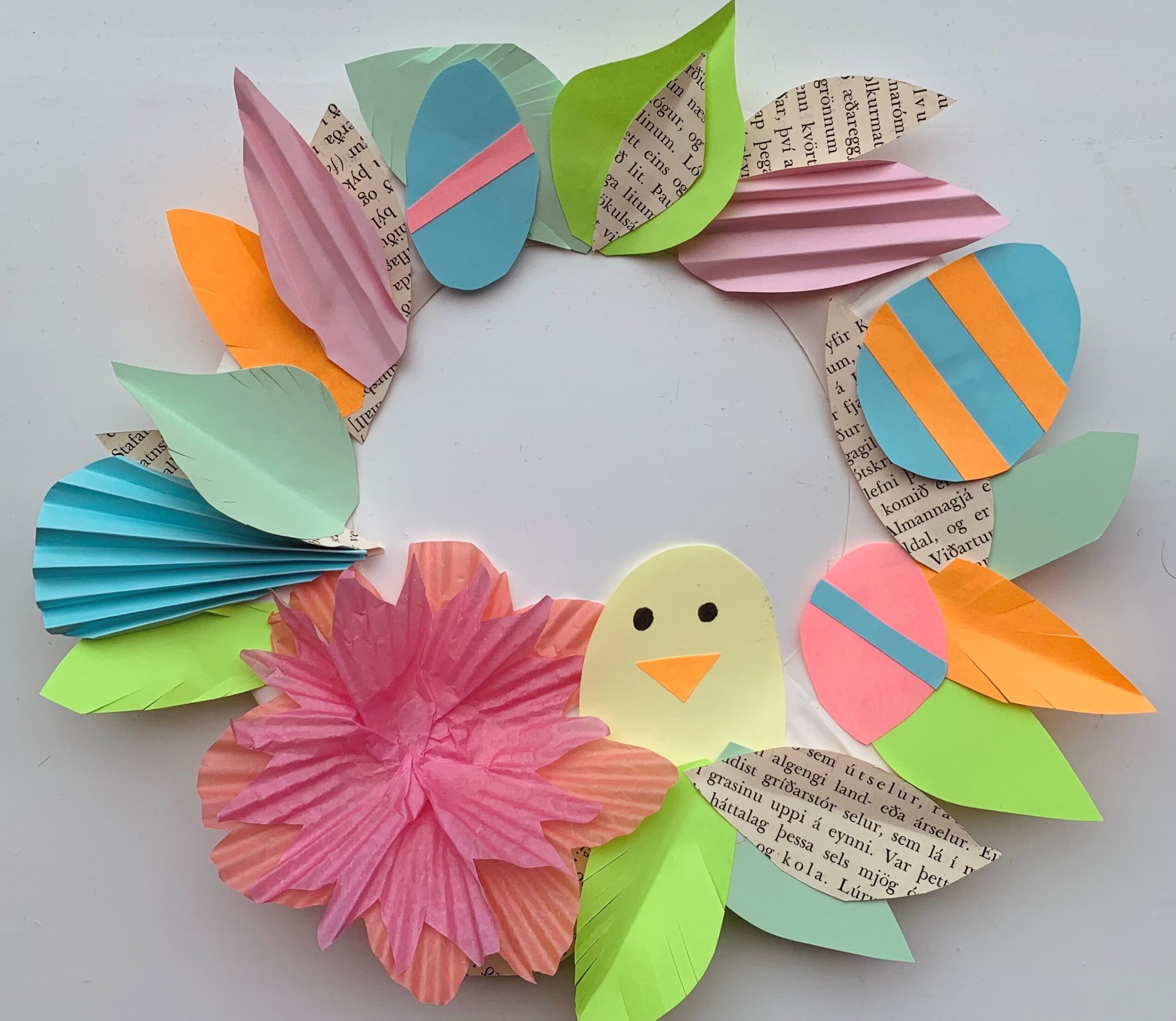 Let’s have a nice time together and make colorful Easter wreaths.